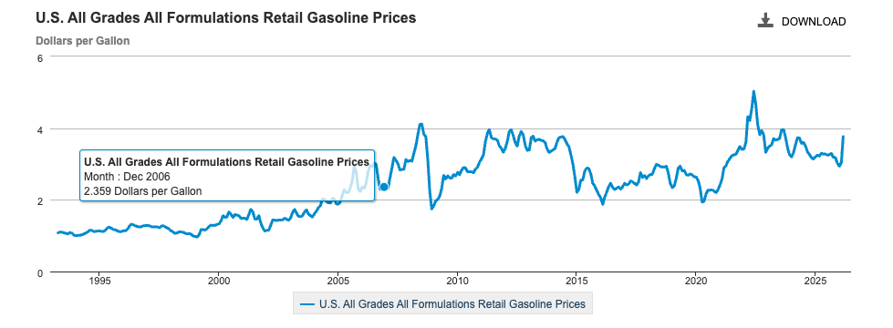 Gas was as low as $2.35/gallon in 2006. Where I’m from in California it’s $6 now. Expecting wages from 2 decades ago is not realistic.